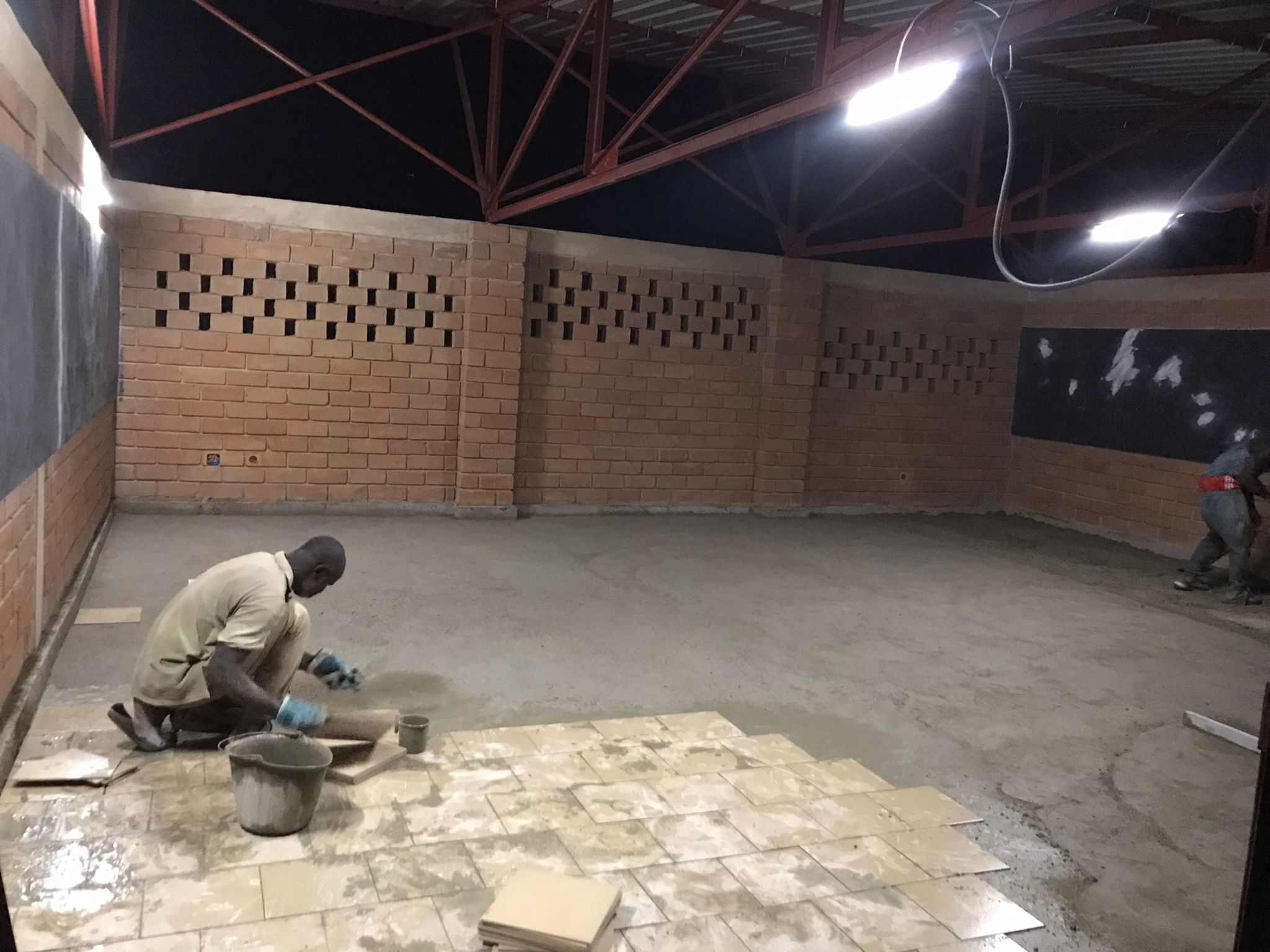 Ce mercredi est une journée difficile pour notre moral. Plusieurs problèmes s’abattent sur nous alors qu’on essaye de tout terminer à temps pour l’inauguration. Premièrement, nous nous rendons compte qu’il nous manquera des tuiles blanches pour carreler l’intérieur des salles de classe et aucun fournisseur à proximité en a en stock. Nous avons donc pris la décision de carreler l’intérieur des salles avec une tuile de couleur terreuse et que ça soit fait en carreaux pleins au lieu de carreaux cassés.
