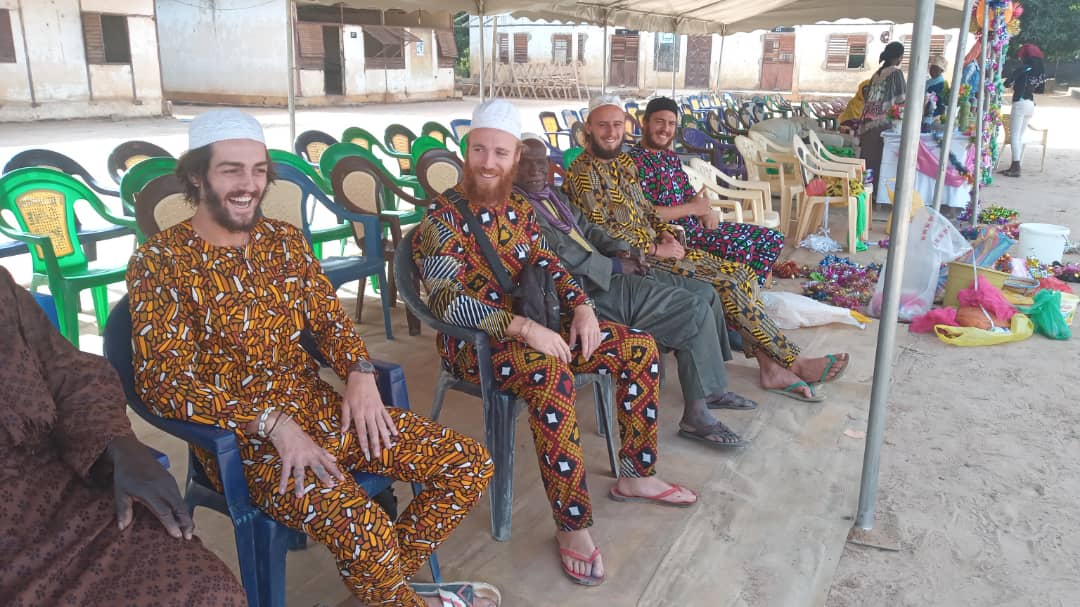 Après une courte nuit, nous sommes tous debout à 9h vêtus de nos tenues traditionnelles, prêt pour la grande fête. L’inauguration commence avec un spectacle dont nous avions le plus hâte; des démonstrations de marabouts du village qui essayent de se couper avec des couteux et des scies. Ils se protègent avec des « gris-gris », des sortes de talisman faits avec des racines, des passages du Coran, de la peau et des cornes de chèvre, des coquillages et des têtes de serpent. Ils s’aspergent également d’une eau bénite composée de mélange de racines seulement connues des marabouts. Le pouvoir combiné des « gris-gris » et de l’eau bénite empêche les lames de pénétrer le corps. Et comment! Devant nos yeux, ils essayent de se couper la langue, l’intérieur des joues, la gorge, les bras, le torse, etc. Ils sont en sorte de transe lors de la démonstration. Figurez-vous que deux de nos maçons font partie du groupe, soit Yaya et Ousmane.