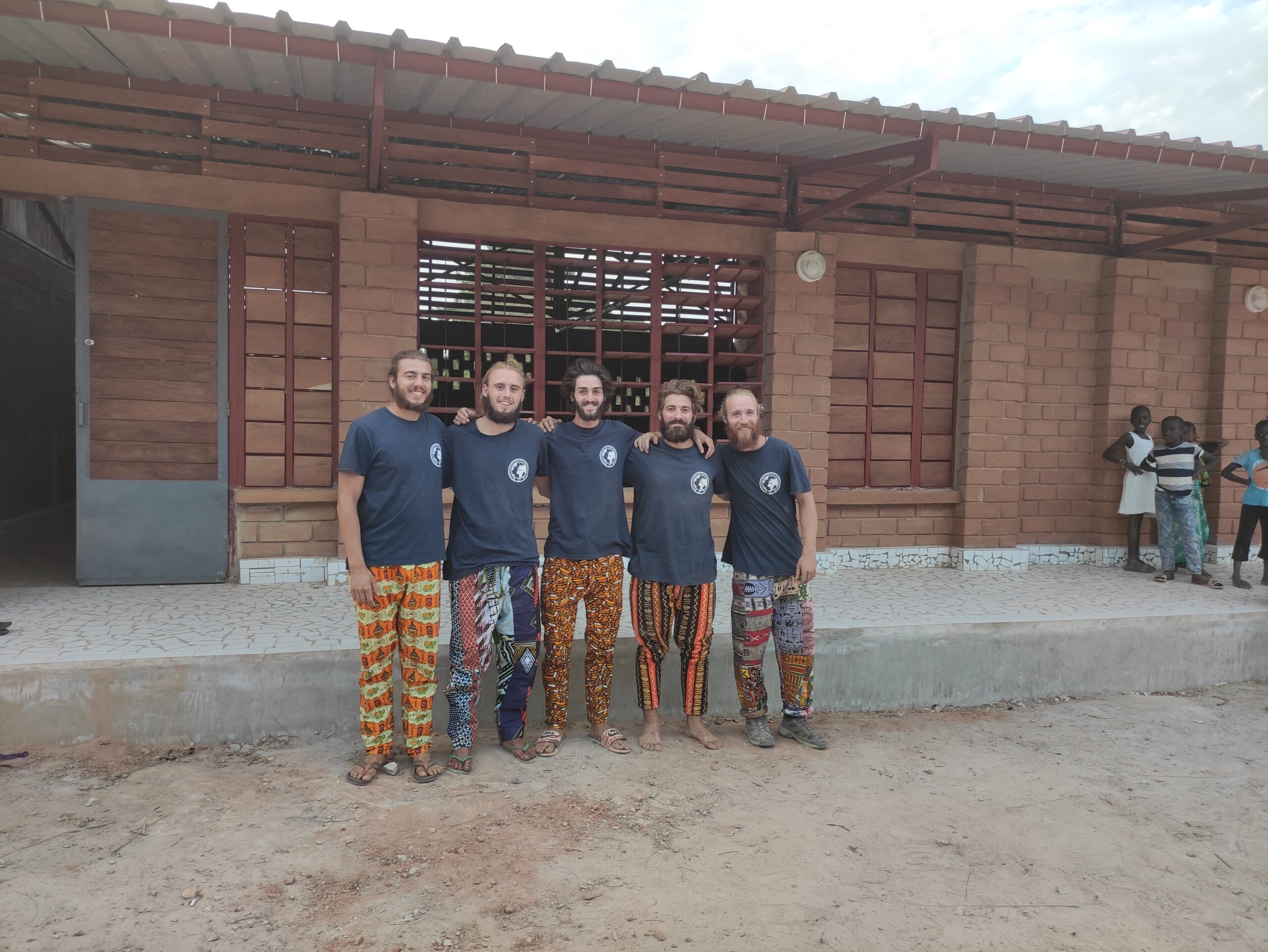 Il ne restait pas moins de 234 planches de bois à couper, percer et installer sur les panneaux derrière le bâtiment. Même si la tâche semblait impossible lors du début de la journée, avec l’aide de quelques renforts, on a pu terminer ça le soir. Bouba et Yaya, deux maçons, sont venus nous prêter main forte pour l’installation des panneaux, ainsi que Matar, un jeune qui habite la maison à côté de nous. Avec toutes nos ressources sur ce travail, on a pu terminer vers 18h et on a commandé du fast-food local pour tout le monde! On en revenait pas de ce qu’on avait accompli.