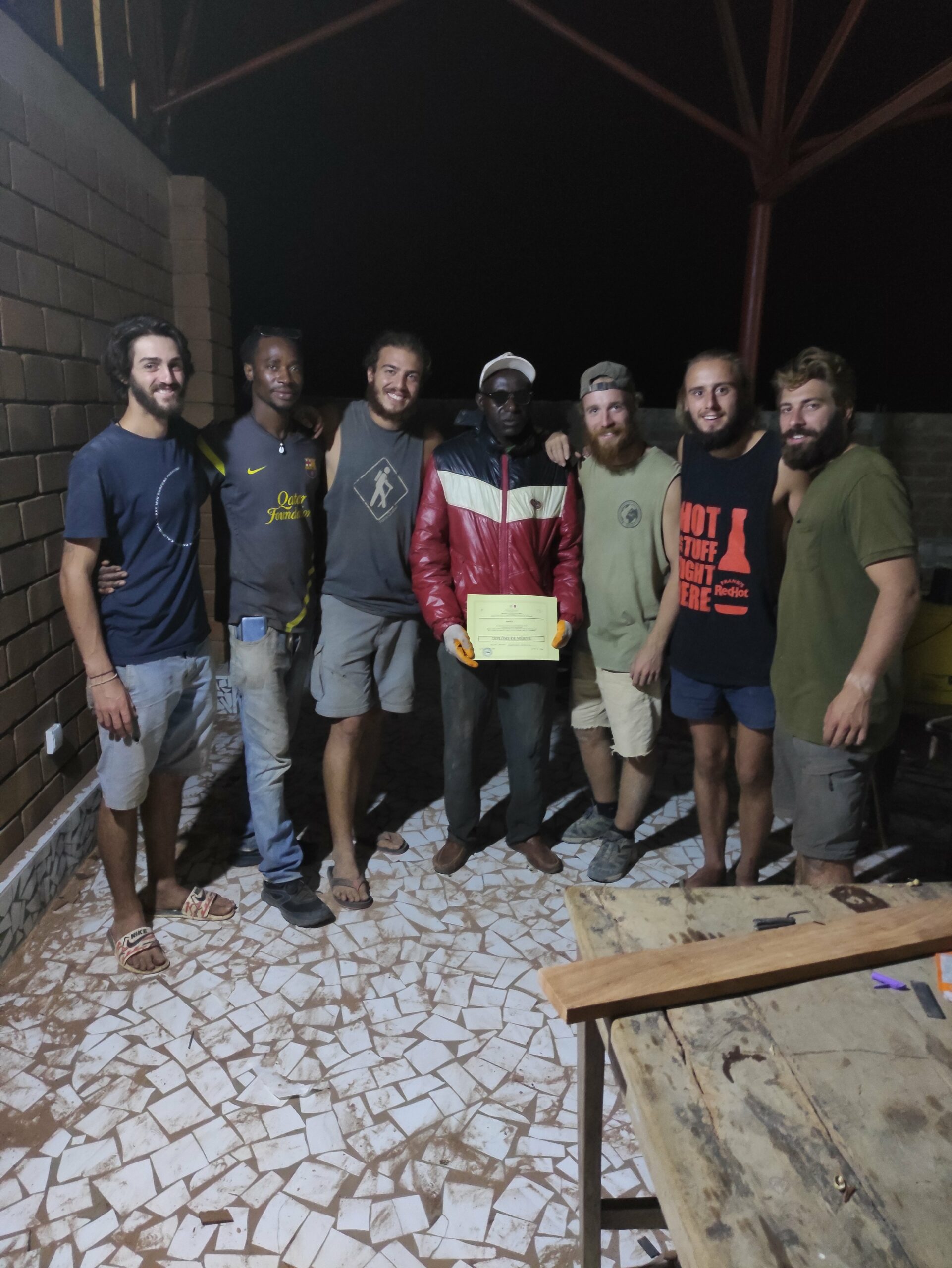 Lundi, les soudeurs de toit continuent de nous aider avec les fenêtres ce qui permet aux jeunes soudeurs du village de commencer à produire les cadres des panneaux. Maël commence également à faire l’inventaire de tout le matériel qui nous reste pour pouvoir le distribuer équitablement à maçons et ouvriers lors de notre départ.